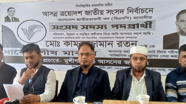 গজারিয়া স্বতন্ত্র প্রার্থীর সমর্থকদের ভয়ভীতি প্রদর্শন ও প্রচারণায় বাধায় সংবাদ সম্মেলন-গাজীপুর সংবাদ
