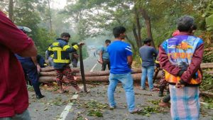 খাগড়াছড়ি মহাসড়কের দেখা যায় ব্যারিকেড দিতে।