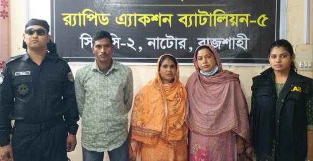 র্যাব জানায় র্যাব-৫ নাটোর ক্যাম্পের একটি অপারেশন দল ২৭ নভেম্বর সোমবার বিকেলে শহরের রেল স্টেশন বাজার এলাকায় চেকপোষ্ট পরিচালনা করে। সেখানে যাত্রীবেশে গাঁজা পরিবহণ কালে ১৪ কেজি গাঁজাসহ মোছাঃ লিপি, মোছাঃ মুক্তা বেগম এবং জাহিদুল হাসান উজ্জ্বল নামে তিন জনকে আটক করে র্যাব।