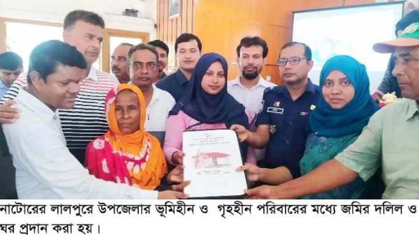 প্রধানমন্ত্রীর আশ্রয়ণ প্রকল্পের ঘর ও জমির দলিল উপহার পেলেন নাটোর লালপুরের ১৪৯ জন ভূমিহীন ও গৃহহীন পরিবার।