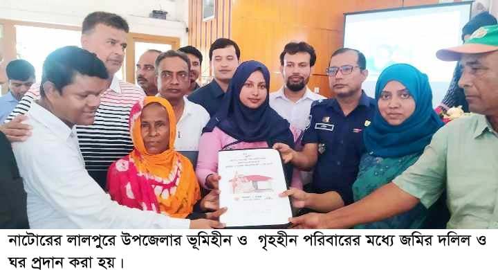 প্রধানমন্ত্রীর আশ্রয়ণ প্রকল্পের ঘর ও জমির দলিল উপহার পেলেন নাটোর লালপুরের ১৪৯ জন ভূমিহীন ও গৃহহীন পরিবার।