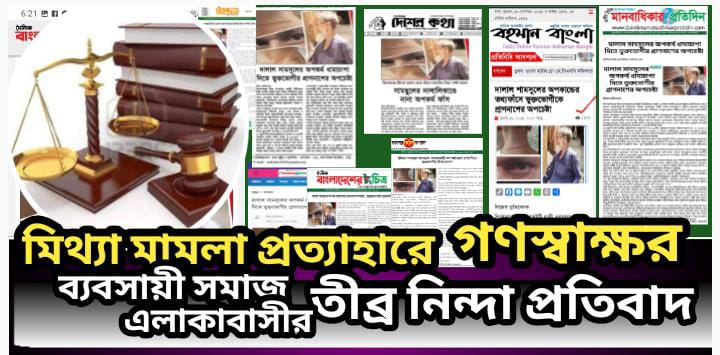 অহেতুক বানোয়াটী মিথ্যা ভিত্তিহীন মামলা থেকে অব্যহতি মুক্তির দাবিতে ব্যাবসায়ি সমাজ ও এলাকাবাসীর লিখিত স্বীকারোক্তিতে প্রতিীয়মান হয় যে,উক্ত মামলা সম্পূর্ণ মিথ্যা ষড়যন্ত্রমূলক। মিথ্যে মামলার বিরুদ্ধে গণস্বাক্ষকর প্রতিবাদ ও তীব্র নিন্দা জানাই অত্র এলাকার ব্যবসায়ী সমাজ ও এলাকাবাসী। যার সত্যতায় ইতোপূর্বে অভিযুক্ত বিচারাধীন মামলার থেকে বাঁচতেই আসামি হয়েও মামলাবাজ সমছুলের দালালি অপকান্ডের তথ্যফাঁস হয়। যা কিনা গনমাধ্যমে প্রিন্ট পত্রিকা অনলাইন সোশ্যাল মিডিয়ায় উঠে আসে একাধিক বার। (মামলার বাদি -গাজী মিয়া, মামলা নং- ০৮/০৯/২৪ইং, ৫০১/২৪ইং নির্বাহী ম্যাজিস্ট্রেট আদালত নাম্বার-২, কিশোরগঞ্জ।)