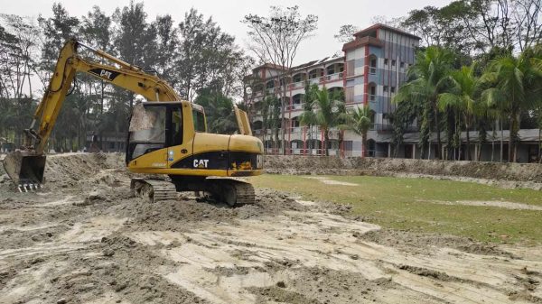 ঠিকাদারের কাজের তদারকির দায়িত্বে থাকা আলতাফ হোসেন এ বিষয়ে বলেন,”স্ক্যাভেটর চালক ভুলক্রমে মাঠ খনন করেছে। ঠিকাদারের নির্দেশে আমরা দ্রুত মাঠ ভরাট করে দিচ্ছি।”