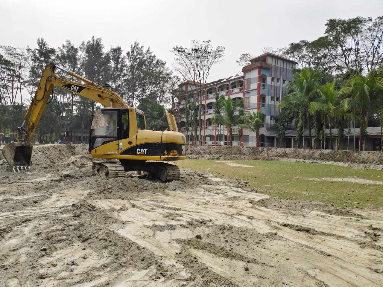 রাতের আঁধারে বিদ্যালয়ের খেলার মাঠ কেটে ফেললো ঠিকাদার-গাজীপুর সংবাদ
