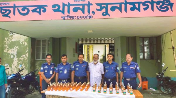 ছাতক থানা পুলিশের বিশেষ অভিযানে ৭৮ বোতল ভারতীয় মদসহ কেনু মিয়া ওরফে বকুল (৫০) নামে এক মাদক কারবারিকে গ্রেফতার করা হয়েছে।