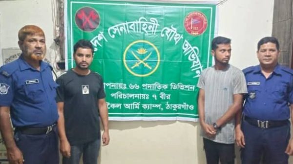 ঠাকুরগাঁওয়ের রাণীশংকৈলে অনলাইন ক্যাসিনোতে জড়িত থাকার দায়ে রিয়াজুল ইসলাম (৩১) ও আরমান আলী (২৪) নামে দু’ব্যক্তিকে গ্রেফতার করেছে যৌথবাহিনী। গোপন সংবাদের ভিত্তিতে শুক্রবার (২৯ আগষ্ট) রাত ৯টায় উপজেলার মীরডাঙ্গী বাজারের দোকান থেকে এবং গাজিরহাট বাজারের দোকান থেকে তাদেরকে গ্রেফতার করা হয়।