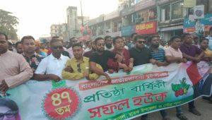 ছাতকে বাংলাদেশ জাতীয়তাবাদি যুবদলের ৪৭ তম প্রতিষ্ঠা বার্ষিকী উপলক্ষে আনন্দ র্যালী ও আলোচনা সভা অনুষ্ঠিত হয়েছে।