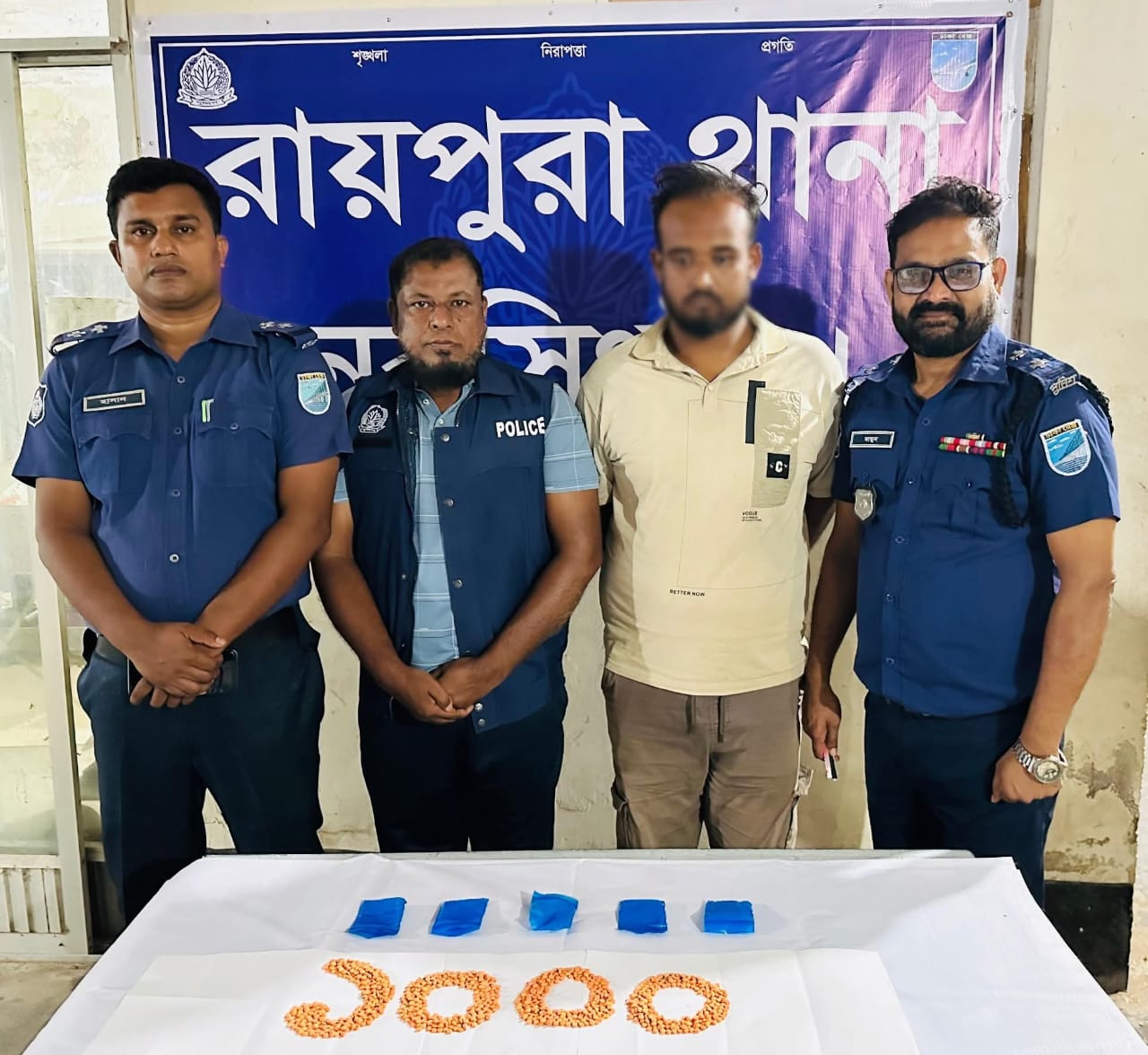 নরসিংদীর রায়পুরায় অভিযানে ১ হাজার পিস ইয়াবা ট্যাবলেটসহ এক মাদক ব্যবসায়ীকে গ্রেফতার করেছে পুলিশ।