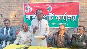 নাটোর জেলা জাতীয় পার্টির যুগ্ম সাধারণ সম্পাদক ও লালপুর উপজেলা জাতীয় পার্টির সিনিয়র সহ-সভাপতি ফরহাদ হোসেনের সভাপতিত্বে সংবাদ সম্মেলনে লিখিত বক্তব্য পাঠ করেন বাগাতিপাড়া উপজেলা জাতীয় পার্টির সভাপতি আব্দুল গনি।