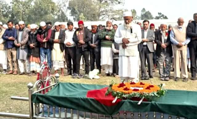 মরহুমের ওসিয়ত অনুযায়ী জানাজায় ইমামতি করেন ঠাকুরগাঁও-২ আসনের বাংলাদেশ জামায়াতে ইসলামীর মনোনীত সংসদ সদস্য প্রার্থী মাওলানা আবদুল হাকিম। জানাজা শুরুর আগে উপজেলা প্রশাসনের উদ্যোগে রাষ্ট্রীয় মর্যাদায় গার্ড অব অনার প্রদান করা হয়। এ সময় জাতীয় পতাকায় মোড়ানো কফিনে ফুল দিয়ে শ্রদ্ধা জানান প্রশাসনের কর্মকর্তা, মুক্তিযোদ্ধা সংসদের নেতৃবৃন্দসহ বিভিন্ন শ্রেণি-পেশার মানুষ। জানাজা শেষে মরহুমের আত্মার মাগফিরাত কামনা করে বিশেষ দোয়া করা হয়। পরে রাষ্ট্রীয় মর্যাদা বজায় রেখে তাকে পারিবারিক কবরস্থানে দাফন করা হয়।জানাজায় উপজেলা প্রশাসনের কর্মকর্তারা ছাড়াও মুক্তিযোদ্ধা সংসদের নেতৃবৃন্দ, বিভিন্ন রাজনৈতিক দলের প্রতিনিধি, ধর্মীয় ব্যক্তিত্ব এবং স্থানীয় জনগণ অংশগ্রহণ করেন।