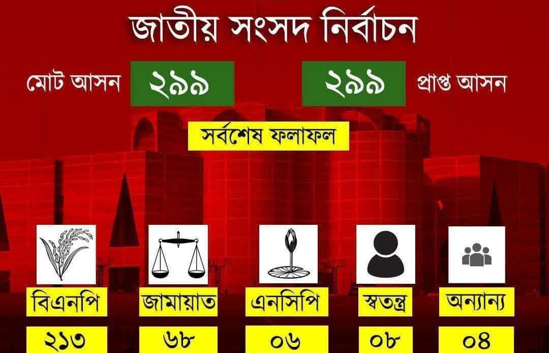 অন্যান্য দলের মধ্যে জাতীয় নাগরিক পার্টি (এনসিপি) ৬টি, ইসলামী আন্দোলন বাংলাদেশ ১টি, বাংলাদেশ খেলাফত মজলিস ২টি, খেলাফত মজলিস ১টি, বাংলাদেশ জাতীয় পার্টি (বিজেপি) ১টি, গণঅধিকার পরিষদ ১টি, গণসংহতি আন্দোলন ১টি এবং স্বতন্ত্র প্রার্থীরা ৭টি আসনে জয়ী হয়েছেন।