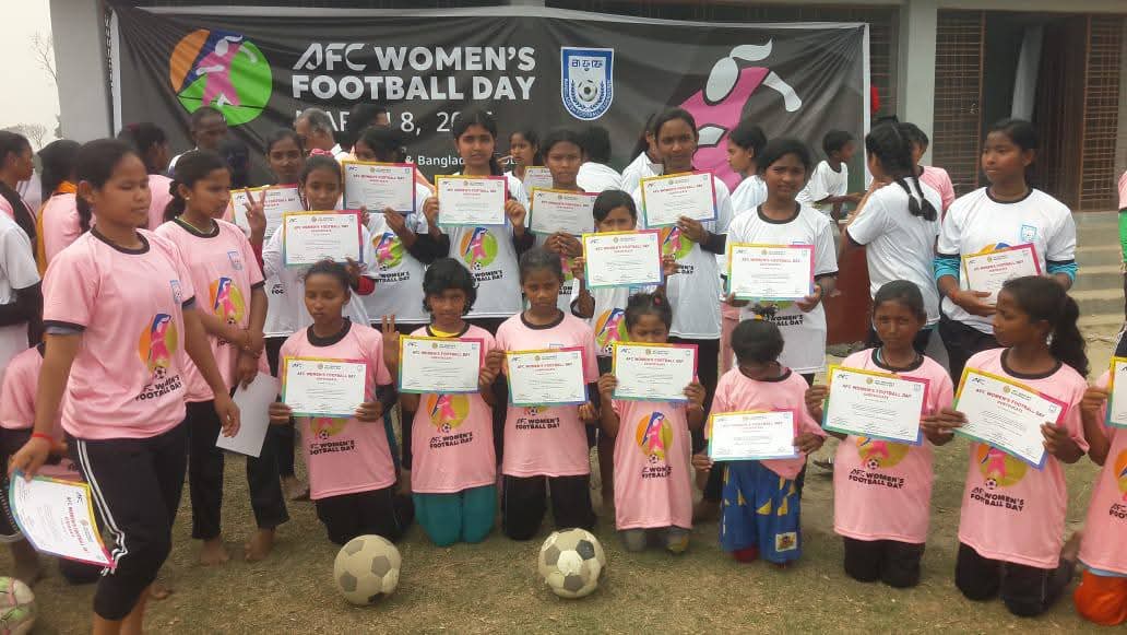 আন্তর্জাতিক নারী দিবস উপলক্ষে ঠাকুরগাঁওয়ের রাণীশংকৈল উপজেলায় বর্ণাঢ্য আয়োজনের মধ্য দিয়ে উদযাপিত হয়েছে ‘ফুটবল ডে’। এশিয়াজুড়ে নারী ফুটবলকে আরও জনপ্রিয় ও অংশগ্রহণমূলক করে তুলতে Asian Football Confederation (এএফসি) ঘোষিত এই বিশেষ দিবসকে ঘিরে রবিবার (৮ মার্চ) উপজেলার রাঙাটুঙ্গী ইউনাইটেড ফুটবল একাডেমি মাঠ যেন রূপ নেয় নারী শক্তির এক উৎসবমুখর মঞ্চে।দিনের শুরুতেই অনুষ্ঠিত হয় এক বর্ণাঢ্য বাইসাইকেল র্যালি। রাঙাটুঙ্গী প্রমিলা ফুটবল মাঠ থেকে শুরু হওয়া র্যালিটি আশপাশের বিভিন্ন সড়ক প্রদক্ষিণ করে পুনরায় মাঠে এসে শেষ হয়। রঙিন ব্যানার, স্লোগান আর প্রাণচাঞ্চল্যে ভরপুর এই র্যালিতে অংশ নেন নারী ফুটবলার, কিশোরী শিক্ষার্থী, কোচ ও ক্রীড়াপ্রেমীরা। বে-সরকারি সংস্থা Eco-Social Development Organization (ইএসডিও) এডুকোর উদ্যোগে আয়োজিত এই কর্মসূচিতে বাইসাইকেল র্যালির পাশাপাশি অনুষ্ঠিত হয় অনুপ্রেরণামূলক আলোচনা সভা। অনুষ্ঠানে প্রায় ১৫০ জন নারী খেলোয়াড়ের মাঝে টি-শার্ট ও সনদপত্র বিতরণ করা হয়। রাঙাটুঙ্গী ইউনাইটেড ফুটবল একাডেমির প্রতিষ্ঠাতা তাজুল ইসলাম বলেন, “এই প্রত্যন্ত অঞ্চল থেকেই অনেক মেধাবী নারী ফুটবলার উঠে এসেছে। তারা আজ জাতীয় পর্যায়ে খেলছে, এমনকি