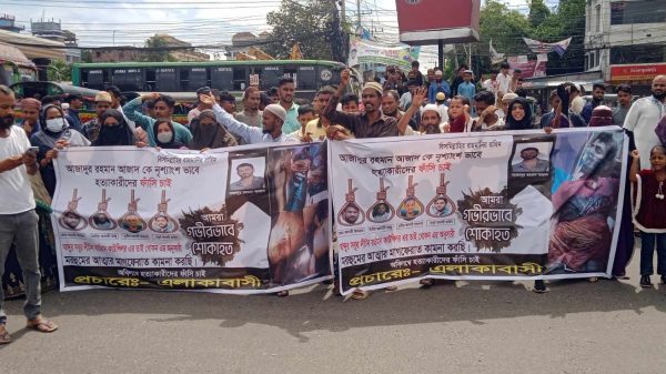 বাবা-হত্যা’র বিচার দাবি-শিশু সন্তান’সহ এলকাবাসীর মানববন্ধন-গাজীপুর সংবাদ
