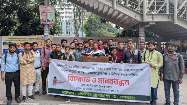 সাংবাদিক অধিকার সুরক্ষায় এমআরইউ’র বিক্ষোভ ও মানববন্ধন-গাজীপুর সংবাদ